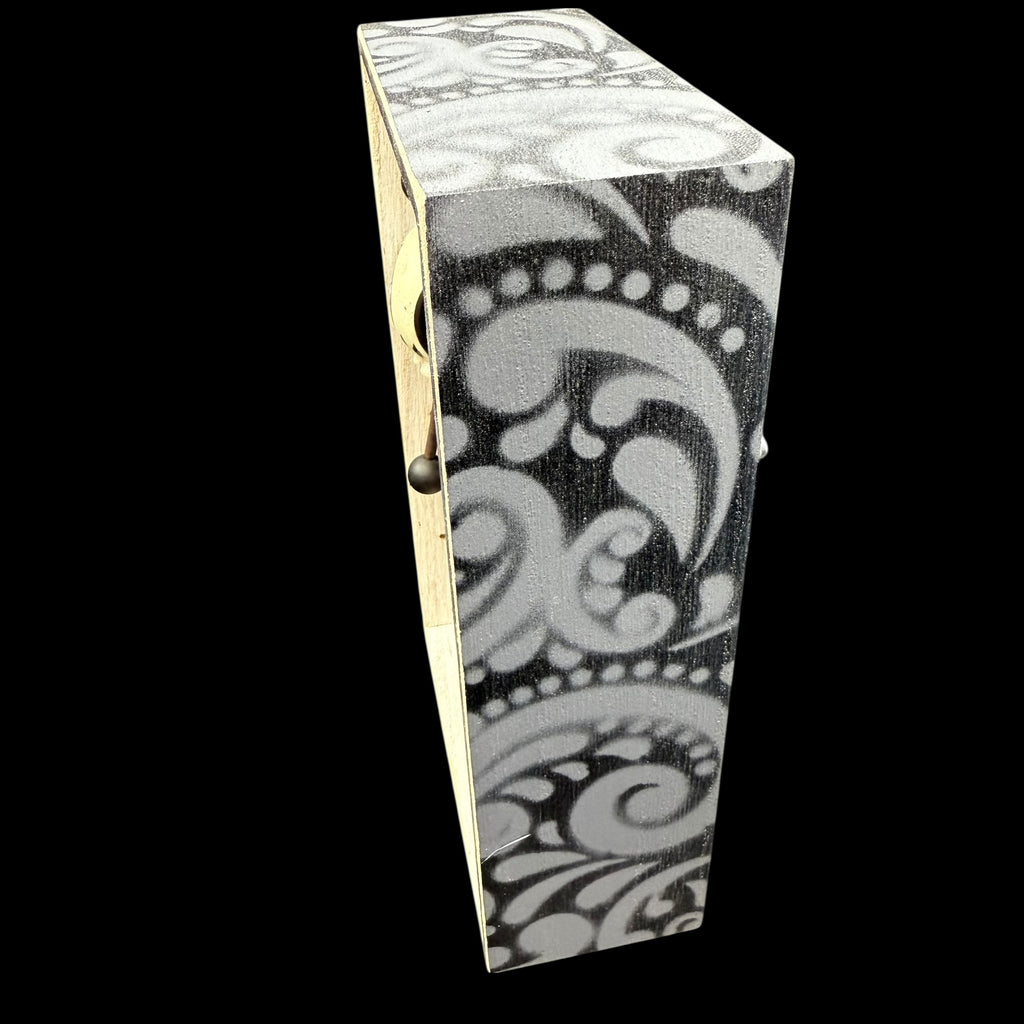 5 1/4"W by 8 1/2"H hand painted, sanded, detailed and wood burned box containing a hand carved, painted, wood burned, detailed assembled and attached C.R.E.E.P. character. The shadow box is equipped with a hanger on the back.