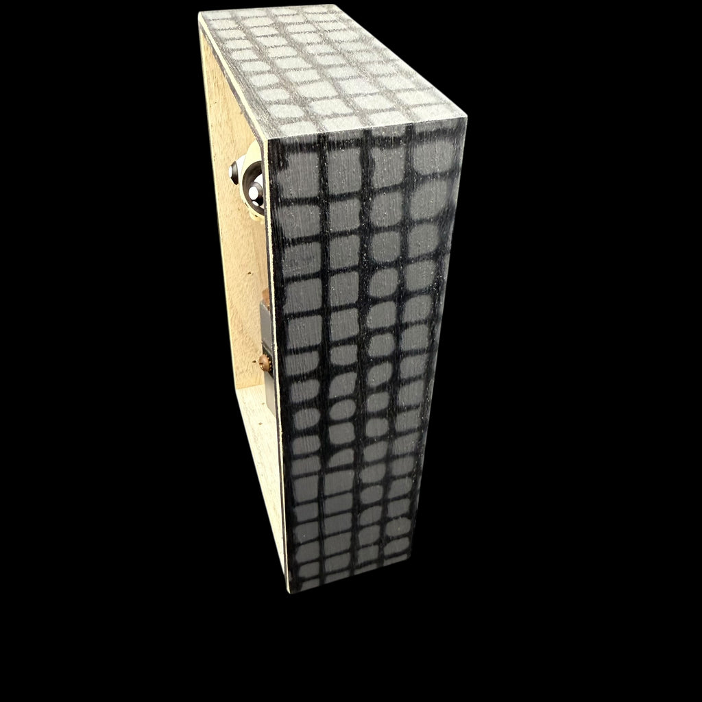 5 1/4"W by 8 1/2"H hand painted, sanded, detailed and wood burned box containing a hand carved, painted, wood burned, detailed assembled and attached C.R.E.E.P. character. The shadow box is equipped with a hanger on the back.